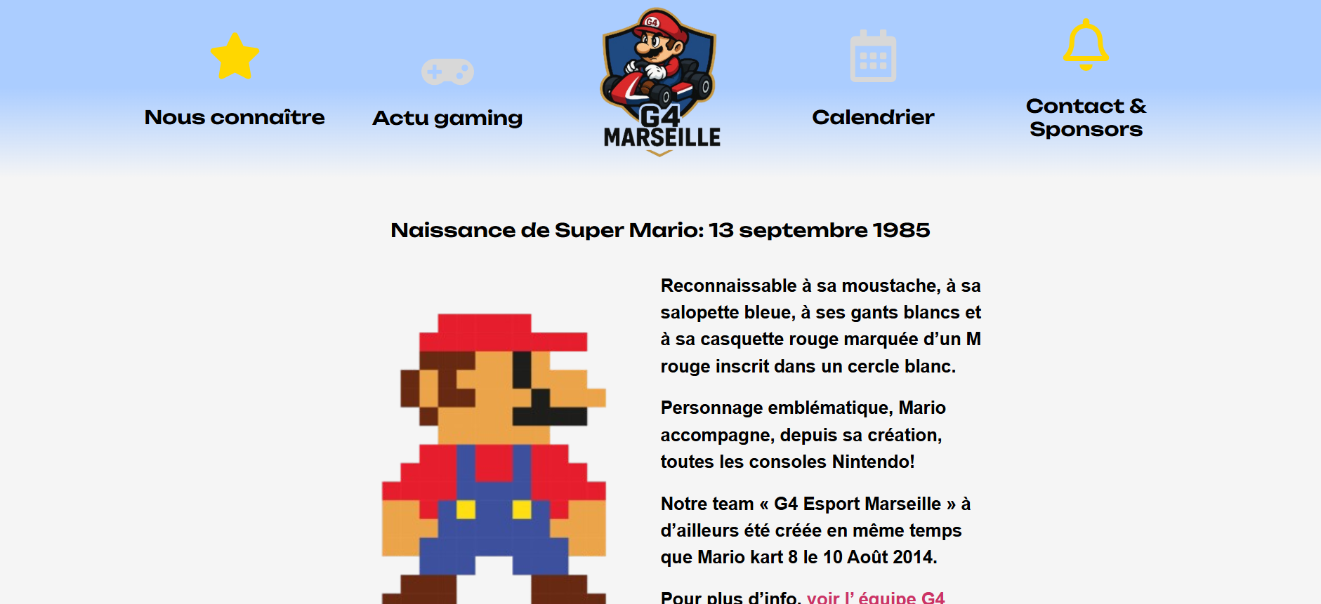 Lors de notre premier projet de l’année, nous avons eu un mois pour concevoir et livrer un site vitrine fonctionnel à partir d’un cahier des charges imposé. Ce projet, nommé G4 Esport Marseille (accessible ici : groupe1.aztrid.fr), a été notre première vraie immersion dans le monde des CMS, en particulier WordPress.